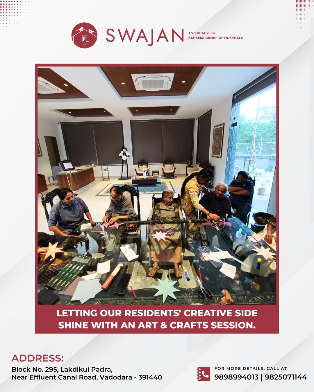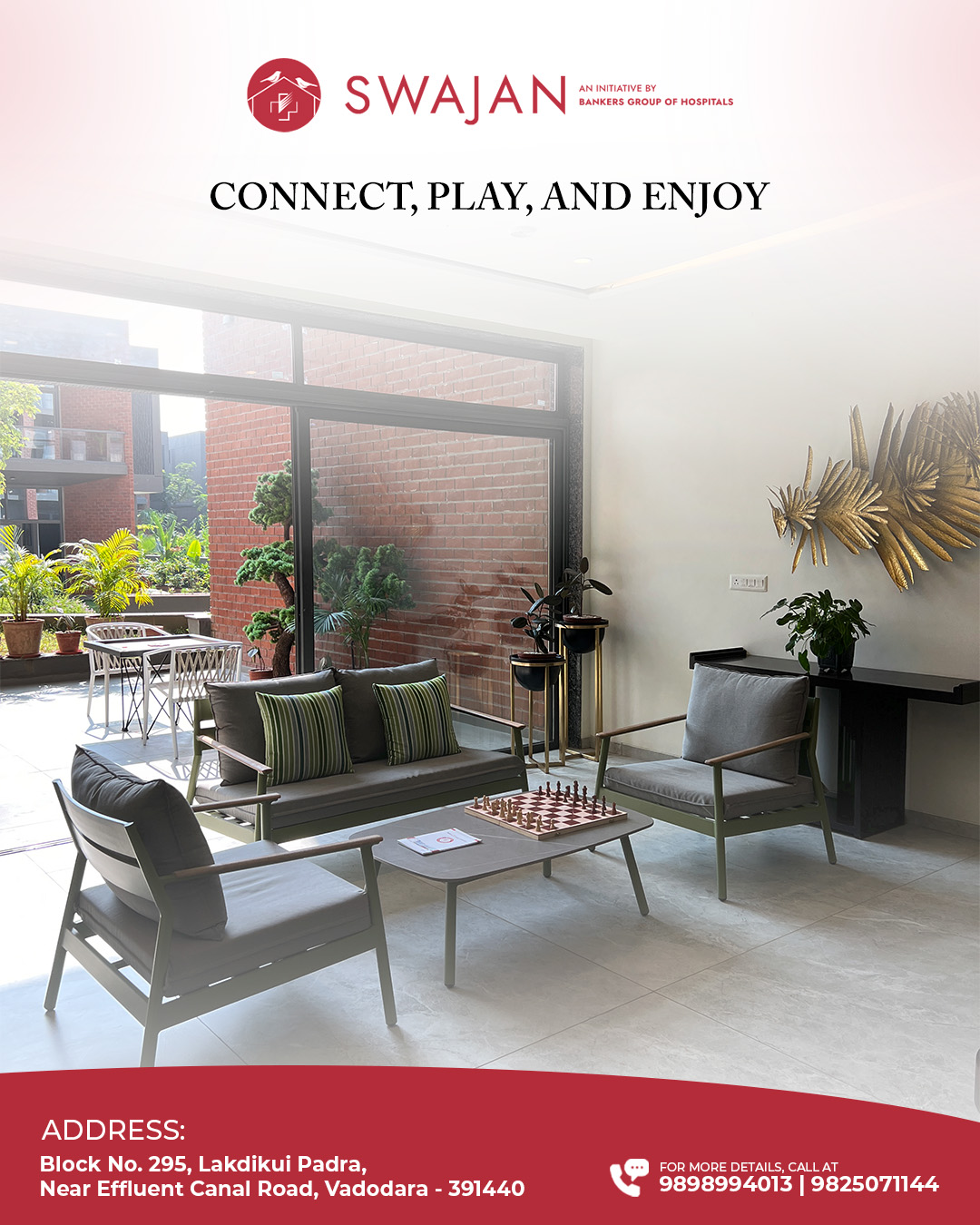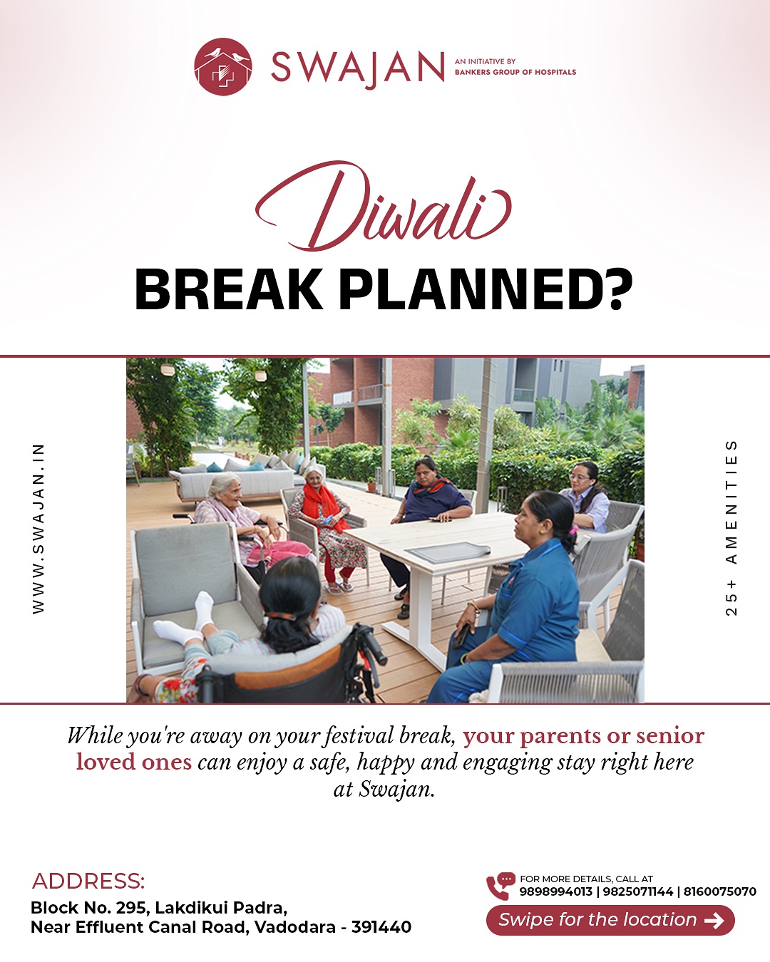 Our amenities are thoughtfully designed with senior citizens comfort and well-being in mind, ensuring a relaxed and fulfilling lifestyle at Swajan!